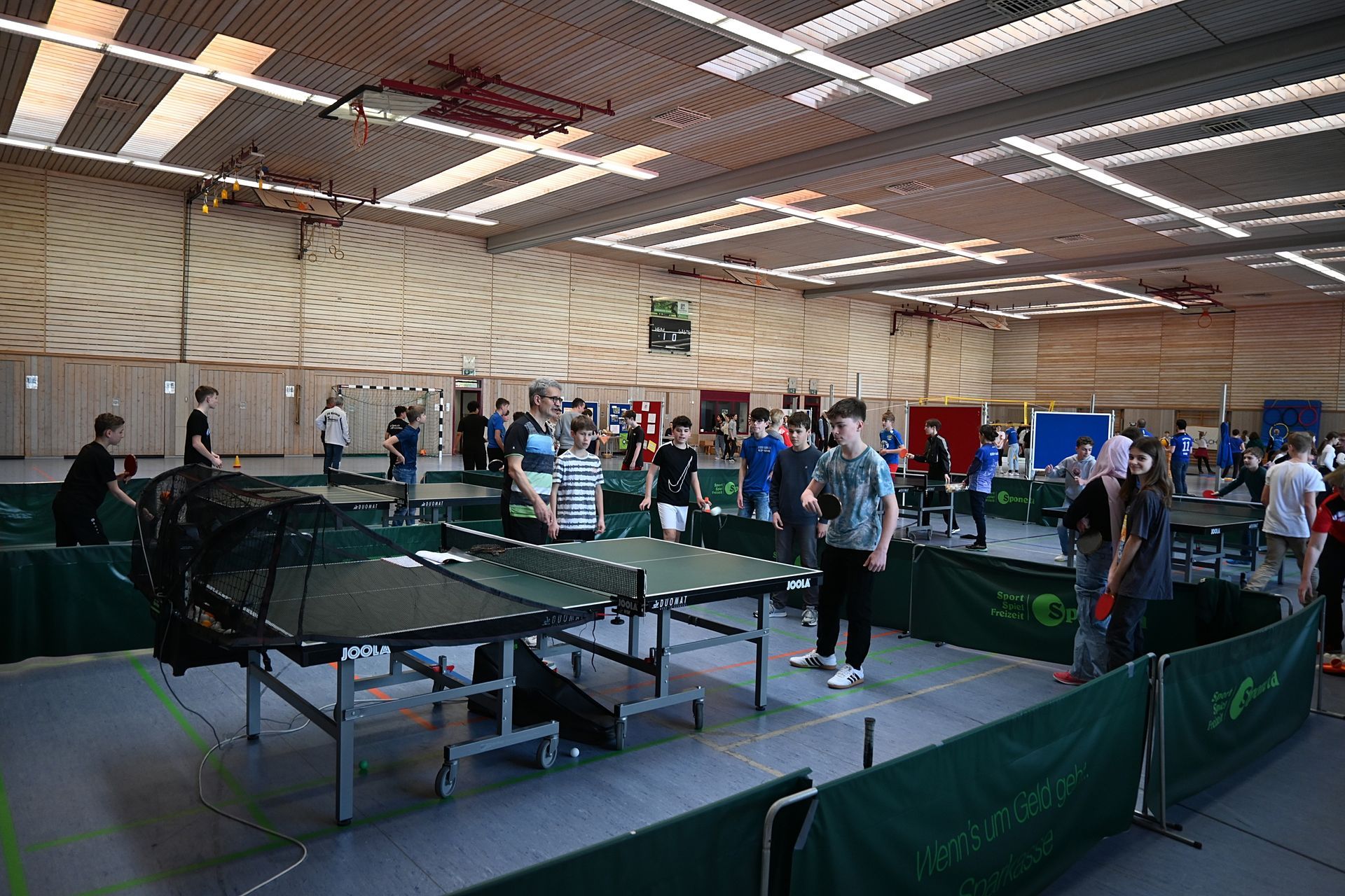 03.05.2025: Veranstaltet durch unseren Trikotausrüster Sport Sandhas fand dieses Jahr zum ersten Mal der Vereins- und Indooraktionstag in der Eichenbachsporthalle statt. Vertreter von bekannten Marken präsentierten die neusten Modelle, ihrer Trikots, Trainingsanzüge, Schläger, Sportschuhe und Bälle. Gleichzeitig präsentierten sich viele Haslacher Vereine, bei denen die Sportausrüstung direkt getestet werden konnte. In der ganztägigen Veranstaltung konnte man vor allem Familien begrüßen, die zum einen etwas shoppen wollten und zum Anderen ihren Kindern eine Platform bieten, zwanglos neue Sportarten auszuprobieren. Auch wenn das Interesse insgesamt etwas verhalten war, so freute es uns als Verein dennoch, Präsenz zeigen zu können und einige Kinder, sowie Erwachsene vom Tischtennis zu begeistern.