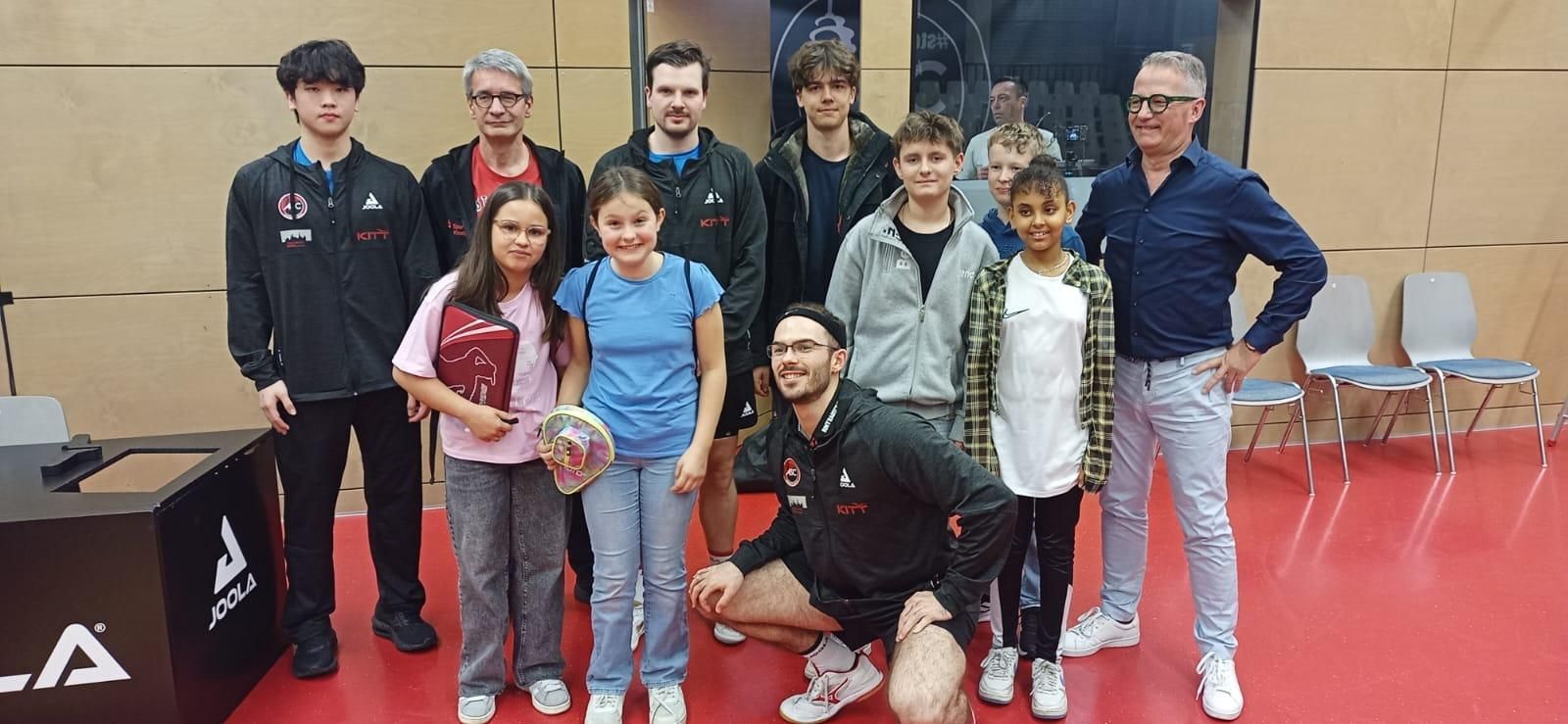 Im Anschluss an die hochklassigen Tischtennisspiele konnten sich die Nachwuchsspieler noch Autogramme ihrer Stars sichern und ein Gruppenfoto mit Dimitrij Ovtcharov rundete einen gelungenen Tischtennisabend ab.