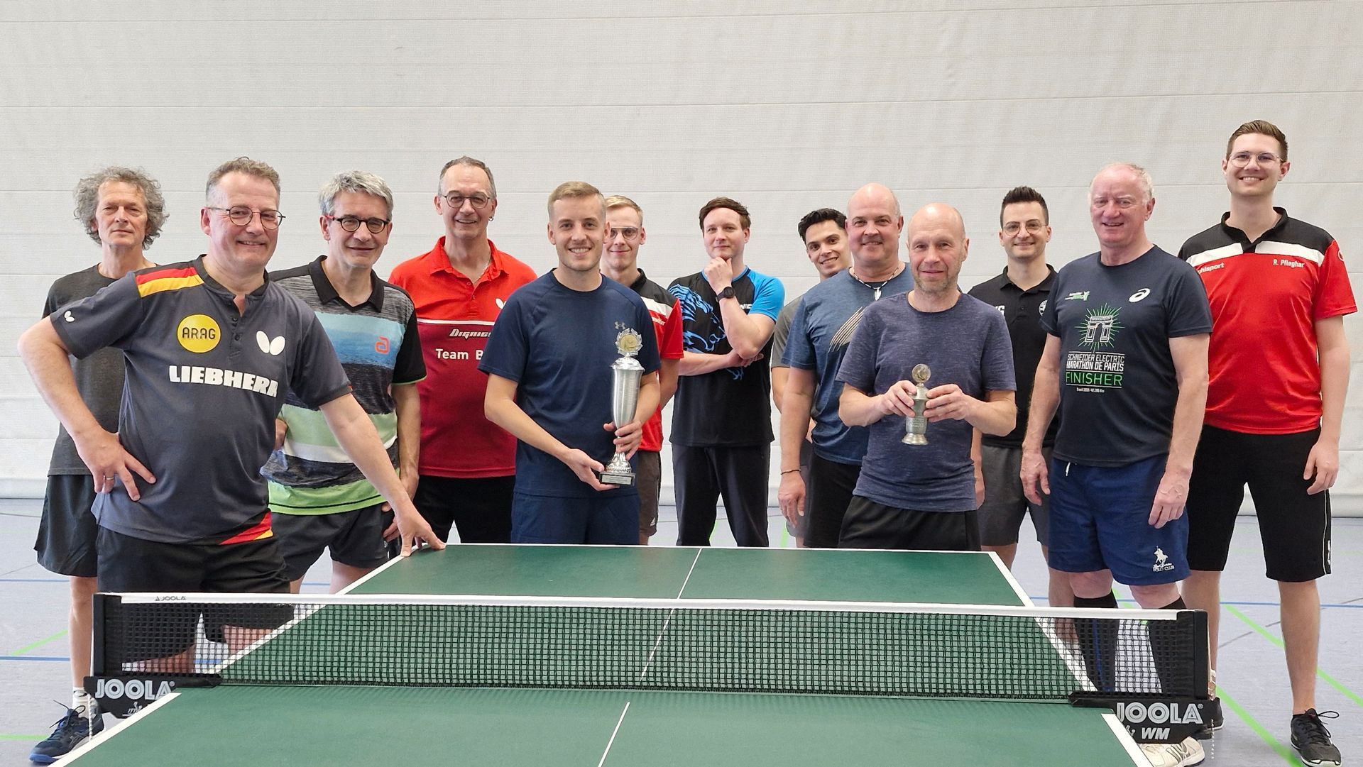 Am Sonntag folgte dann der Wettbewerb für die Erwachsenen. Die Einteilung der Klassen erfolgte nach den TTR-Werten der Spieler. In der Klasse bis 1350 Punkten starteten 22 Aktive. Nach Vorrunde in Gruppenspielen und anschließendem KO-System konnte mit Benjamin Gallus wie bereits im Vorjahr ein Spieler des TTC Steinach den Pokal gewinnen. 9 Spieler kämpften im Wettbewerb 1351-1500 Punkte um den